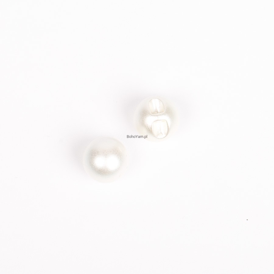Biały delikatny guzik, imitacja perły, wykonany z poliamidu. Ten syntetyczny guzik na stopce może być przyszyty bez widocznego szwu i ma piękny połysk.