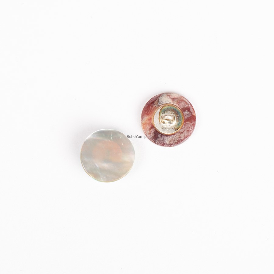 Białe, okrągłe guziki na stopce, wykonane z muszli. Guziki z masy perłowej są delikatne, lśniące i bardzo trwałe. Z uwagi na fakt, że są wykonane z naturalnego materiału, mają unikalny kształt, kolor i fakturę. To oznacza, że każdy guzik jest na swój sposób wyjątkowy.