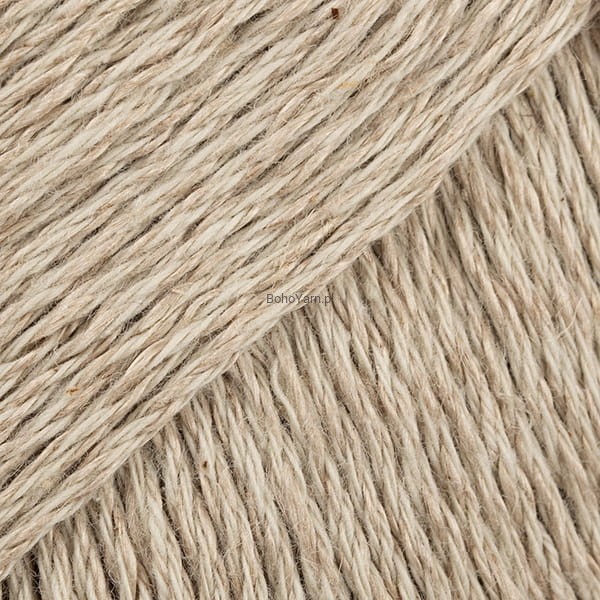 Naturalna rustykalna włóczka składająca się z wielu włókien lnu i bawełny. Zwarta struktura lnu w połączeniu z miękkością bawełny sprawia, że włóczka jest wytrzymała i trwała.