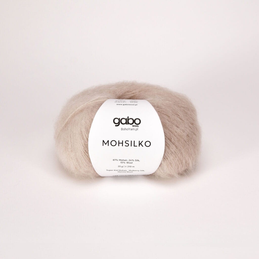 MOHSILKO to włóczka, którą można przerabiać pojedynczą lub podwójną a nawet potrójną nitką – dzianina w zależności od ilości użytych nitek może tworzyć delikatną, prześwitującą i zwiewną chmurkę lub nieco grubszą dzianinę. Idealnie sprawdzi się także w połączeniu z włóczkami klasycznymi dodając im puszystości i delikatnego połysku. Szczególnie polecamy do łączenia z naszą MY TIME MERINO, FINE PERUWIAN WOOL, KROOPA WOOL czy BABY ALPACA.
